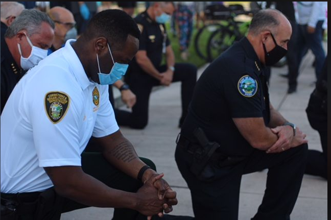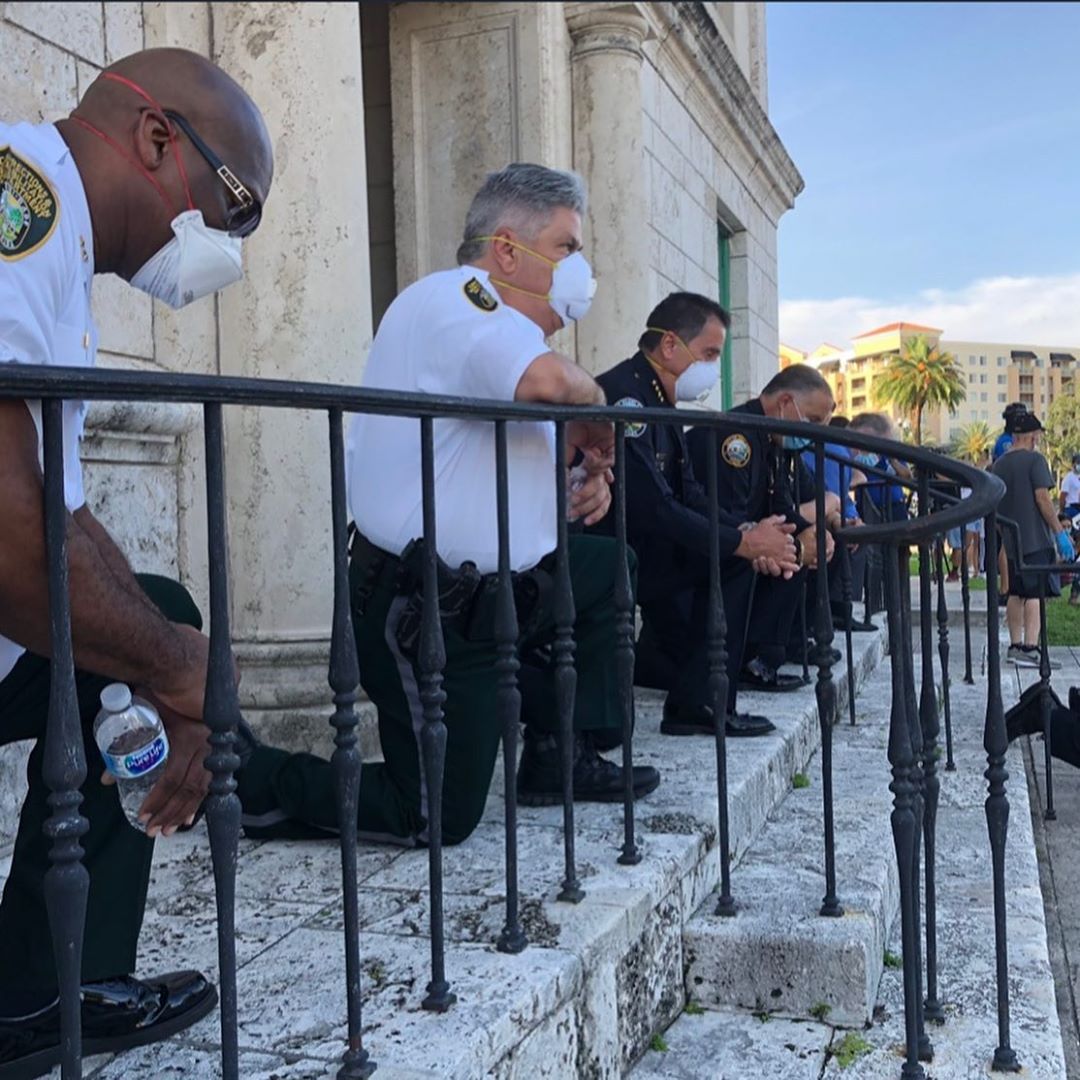 Харин Майамид цагдаа нар жагсагчидтай хамт өвдөг сөхрөн, амиа алдсан Жорж Флойдын дурсгалыг хүндэлснээр эсэргүүцлийнхэнтэй эвлэрцгээжээ.
