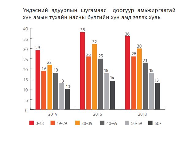 Үндэсний ядуурлын шугамаас доогуур амьжиргаатай хүн амын тухайн насны бүлгийн хүн амд эзлэх хувь 18 хүртэлх насны хүүхдийн хувьд хамгийн өндөр байгаа нь хүүхэд ядууралд өртөхөд хамгийн ойр, эмзэг байдгийн тод жишээ аж.