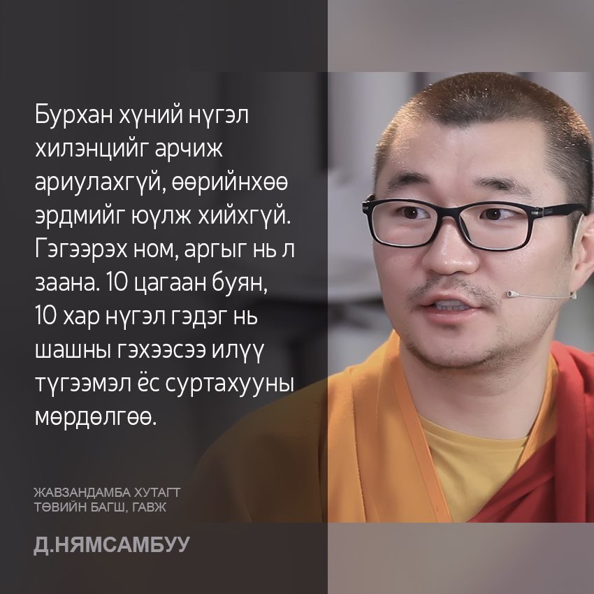 Таны бие, хэл, сэтгэл ариусаж, Бурхан багш лугаа адил төгс гэгээрлийн хутгийг олох болтугай.
