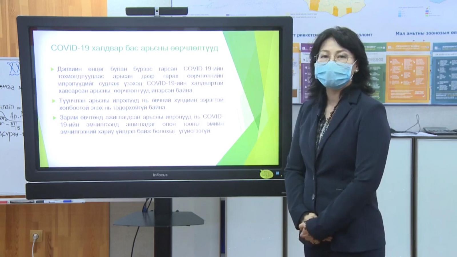 Тэрбээр “Ковид-19 халдвар нь тодорхой хэмжээний арьсны халдвартай хавсарсан өөрчлөлт зарим өвчтөн дээр илэрсэн байна. Арьсны илэрлүүд нь өвчний хүндийн зэрэгтэй холбоотой эсэх нь тодорхойгүй байна. Зарим өвчтөнд ажиглагдсан арьсны илрэл нь ковид-19 эмчилгээнд ашигладаг олон тооны эмийн бодисын хариу урвал байхыг үгүйсгэхгүй. Иймд арьсыг чийгшүүлэх, арьсан дээр гарсан хэсэг газрын эмчилгээ хийх зэрэг аргуудыг сонгож байна” гэлээ.
