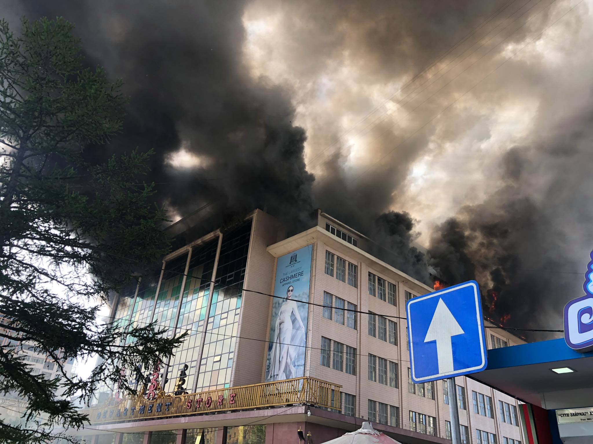 Улсын их дэлгүүр (УИД)-ын 6, 7 давхрыг хамарсан галыг унтраахаар Онцгой байдлын алба хүч нэмэгдүүлэн ажиллаж байна.