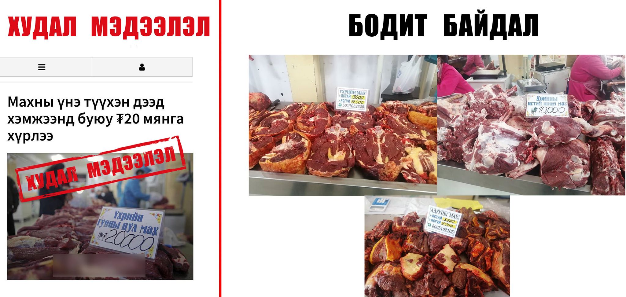 Олон нийтийн хэвлэл мэдээллийн хэрэгслээр “Махны үнэ нэмэгдэж, 18000-20000 төгрөгт хүрлээ. Мах худалдаж авч чадахгүй иргэд шулсан ясаар өдөр хоногийг өнгөрөөж байна” гэсэн гарчигтай нийтлэлийг байршуулж, олон нийтийг төөрөгдүүлсэн, үндэслэлгүй мэдээлэл түгээсэн байна.