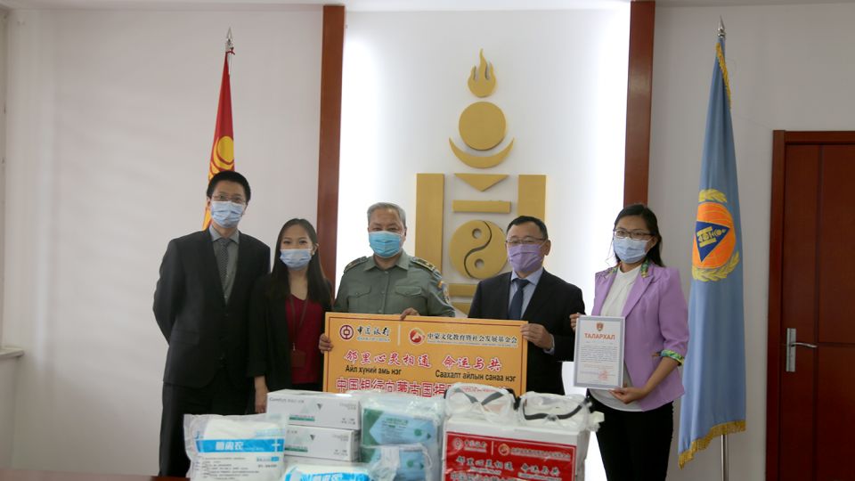 Өнөөдөр “Банк оф Чайна” төлөөлөгчийн газраас нэг удаагийн бээлий, амны хаалт тус бүр 10000 ширхэг, 2000 ширхэг хамгаалалтын нүдний шил, 1000 ширхэг хамгаалах хувцсыг Улсын онцгой комисст хүлээлгэн өглөө.