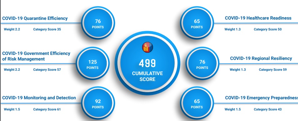 Судалгаанд нийт 200 орны чансааг хөл хорионы дэглэм, эрүүлийг хамгаалах системийн хүчин чадал, бэлэн байдал зэрэг 130 үзүүлэлтээр хэмжин гаргасан байна.