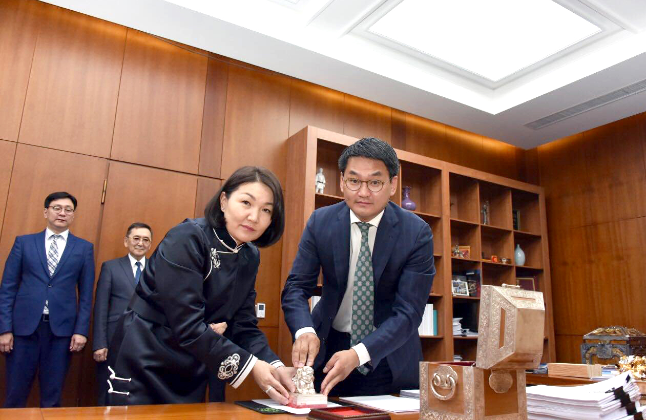 Монгол Улсын Ерөнхийлөгчийн Тамгын газрын дарга Ө.Шижир болон УИХ-ын Тамгын газрын Ерөнхий нарийн бичгийн дарга Л.Өлзийсайхан нар 2019 онд батлагдсан хуулиуд дээр өнөөдөр Төрийн тамга дарлаа.