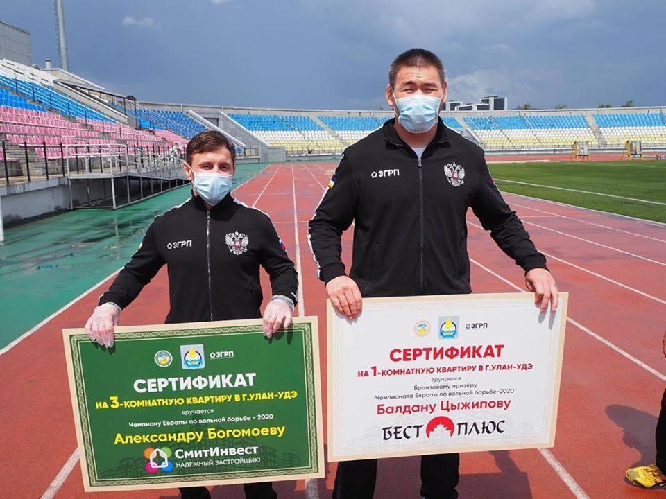 ОХУ-ыг төлөөлж 61 кг-ын жинд түрүүлсэн Александр Богомоев, 125 кг-д хүрэл медаль хүртсэн Балдан Цыжипов нарыг Буриадын “Бэстплюс”, “Смитинвест”, Забайкалийн уул уурхайн компаниуд хамтран орон сууцаар шагнав.