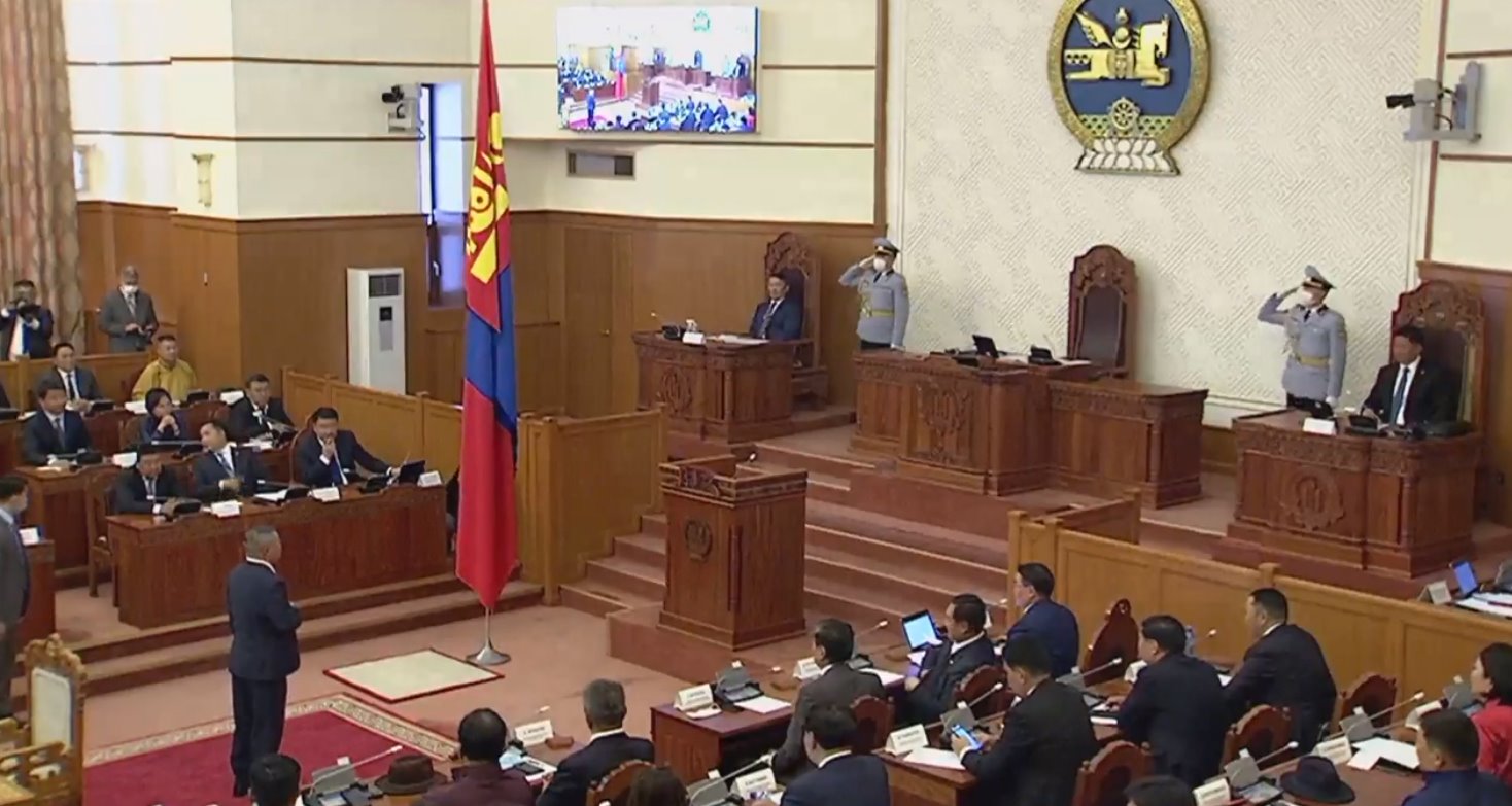 Улсын Их Хурлын тухай хуульд оруулсан өөрчлөлтийн дагуу энэ удаагийн парламентад сонгогдсон гишүүд нэг нэгээрээ индэрт гарч тангараг өргөлөө. Хууль тогтоох дээд байгууллагын гишүүний тангарагийн үгэнд өөрчлөлт орсныг тодотгоё.