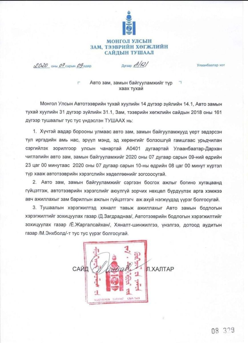Түүнчлэн, ойрын өдрүүдэд Улаанбаатар хотоос дараах чиглэлд зорчихгүй байхыг Улсын онцгой комисс анхааруулж байна.