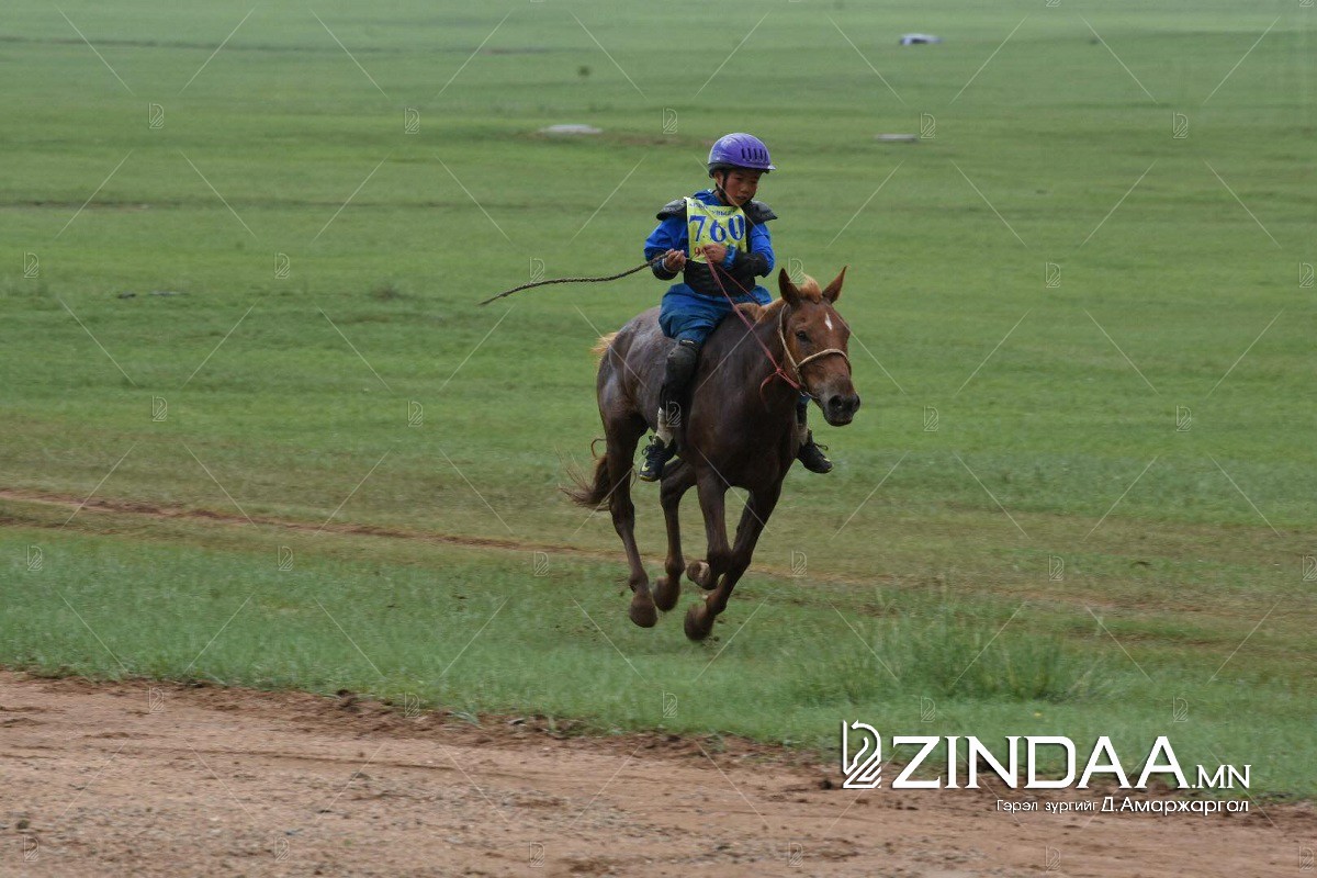 Багахангай дүүргийн харьяат Монгол Улсын манлай уяач Ганбаатарын Буянтогтохын уяж хурдуулж байгаа Завхан аймгийн Завхан мандал сумын Цэрэндоржийн Мөнххуягийн янзага цавьдар хурдаллаа.