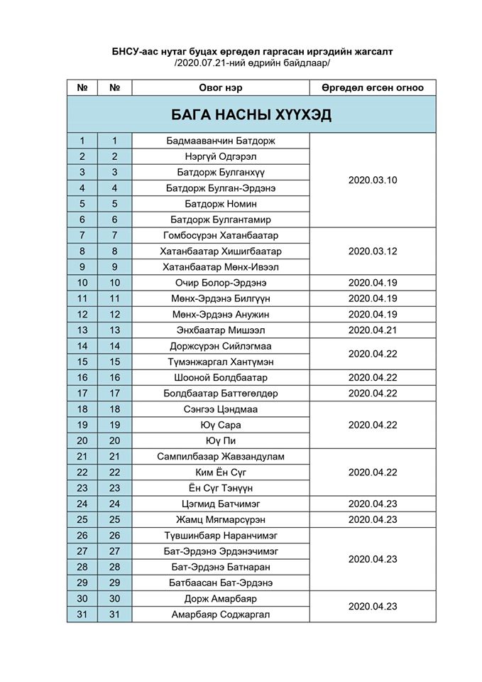 Нутаг буцах хүсэлт гаргасан иргэдийн НЭРСИЙН ДЭЛГЭРЭНГҮЙ ЖАГСААЛТТАЙ ЭНД ДАРЖ ТАНИЛЦАНА УУ