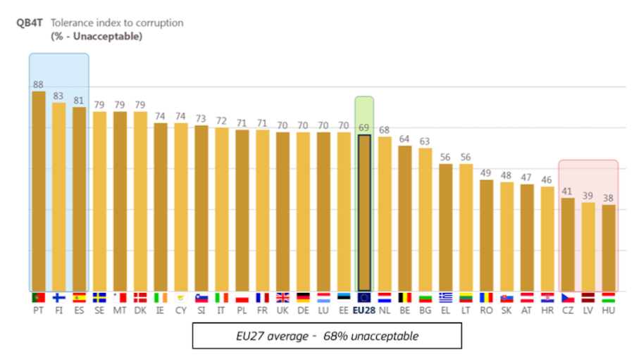 Бүс нутгийн хувьд харилцан адилгүй байгаа ч судалгаанд оролцогчдын дийлэнх нь авлигын ямар нэгэн үйлдлийг хүлээн зөвшөөрөх боломжгүй гэж үзсэн хэвээр байна. Төрийн захиргааны болон төрийн үйлчилгээний байгууллагаас ямар нэгэн үйлчилгээ авахын тулд бэлэг өгөх, мөнгө өгөх нь байж болох зүйл гэж судалгаанд оролцогчдын дийлэнх нь үзсэн Европын холбооны хоёр улс нь Унгар, Словак болж байна.