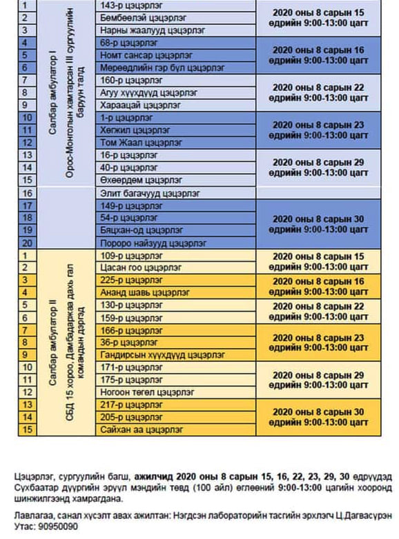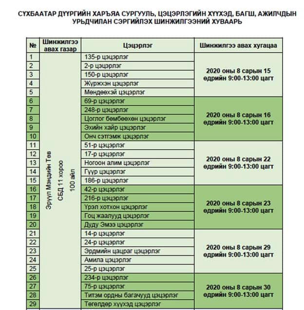 Сүхбаатар дүүргийн харьяа сургууль, цэцэрлэгийн багш ажилчид, хүүхдийн урьдчилан сэргийлэх шинжилгээний хуваарийг танилцуулж байна.