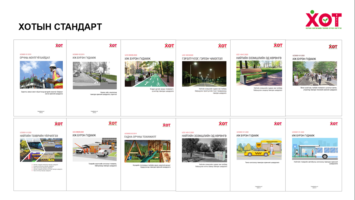 Хотын стандарт, орчны аюулгүй байдлын хяналт зохицуулалтын газар нь “Нэг Хот Hэг Стандарт” зорилтот жилийн хүрээнд иргэдийн амьдрах орчны аюулгүй байдлыг хангах, нийслэлийн нутгийн захиргааны байгууллагуудын үйл ажиллагааг уялдуулан зохицуулах, зохион байгуулах, хөрөнгө оруулалтын үр ашгийг дээшлүүлэх зорилгоор “Хотын стандарт, орчны аюулгүй байдлын хяналт зохицуулалтын баримт бичиг” -ийг боловсруулж өдөр тутмын үйл ажиллагаанд мөрдүүлэн ажиллаж байна.
