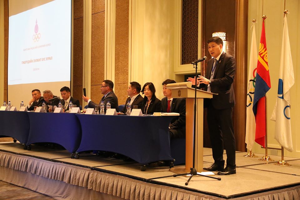 Монголын үнэдсний олимпийн хороо /МҮОХ/-ны Гишүүдийн ээлжит бус хурал өнөөдөр /08.14/ Улаанбаатар хотноо "Шангри-Ла" зочид буудлын хурлын танхимд зохион байгуулагдаж өндөрлөлөө.