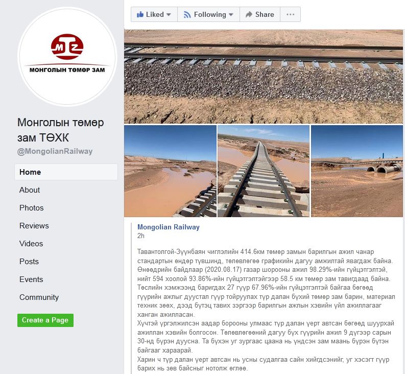 Түүнчлэн Тавантолгой-Зүүнбаян чиглэлийн 414.6км төмөр замын барилгын ажил чанар стандартын өндөр түвшинд, төлөвлөгөө графикийн дагуу амжилтай явагдаж байна. Өнөөдрийн байдлаар (2020.08.17) газар шорооны ажил 98.29%-ийн гүйцэтгэлтэй, нийт 594 хоолой 93.86%-ийн гүйцэтгэлтэйгээр 58.5 км төмөр зам тавигдаад байна. Төслийн хэмжээнд баригдах 27 гүүр 67.96%-ийн гүйцэтгэлтэй байгаа бөгөөд гүүрийн ажлыг дуустал гүүр тойруулах түр далан бүхий төмөр зам барин, материал техник зөөх, дээд бүтэц тавих зэргээр барилгын ажлын хэвийн үйл ажиллагааг ханган ажилласан хэмээн мэдээлэв.
