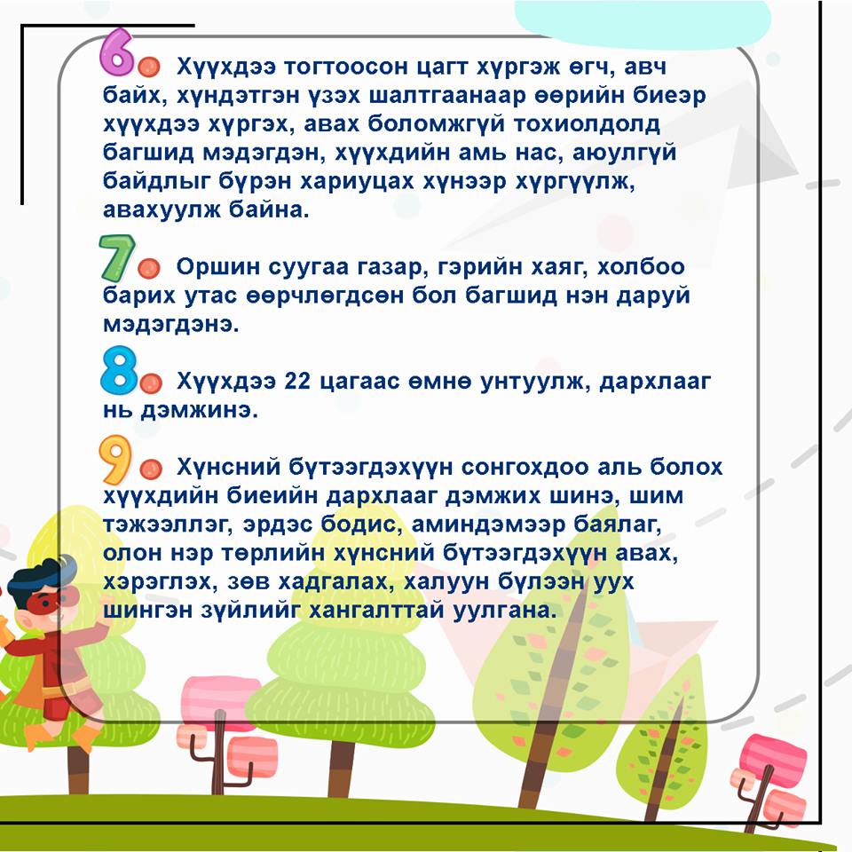etseg ehchuud uursduu huuhdee avah tsagaa zohitsuulah heregtei.Huuhdee avah gd yarch sandraad ochihoor baahan huuhed daigaad bdag .ugui gd bh hetsuu.Tuhain huuhed bairnihaa gadnas alga bolvol hen hariutsah ve.Baga angiin bagsh nar zaaval ar geriin hund ni huuhdiig ugch bh heregtei6