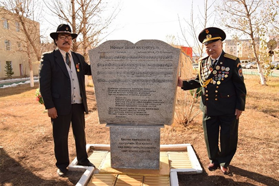 Үйлс нь өөдөө номын далай... хэмээх “НОМЫН ДАЛАЙ ИХ СУРГУУЛЬ” дууны шүлгээрээ ХАЯН багштайгаа оролцож “ТЭРГҮҮН БАЙР”-ын шагнал хүртэж байв. Тэр цагаас чинагш арваад жилийн дараа буюу 2013 онд тус сургуулийн захирал Я.ЧОЙЖАМЦ генералын тушаалаар албан ёсны “СҮЛД ДУУ”-гаар батлагдаж, улмаар сургуулийн орчинд хөшөөнд мөнхөрч, улмаар бид хоёрыг урьж хүндэтгэл үзүүлсэн зэрэг сайхан дурсамж л үлдлээ дээ.