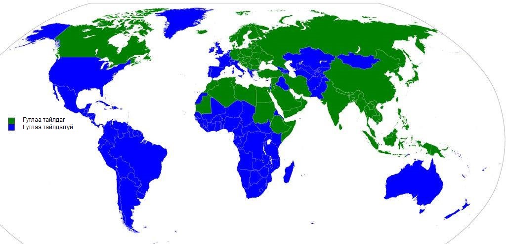 Гутлаа тайлдаг орны тоонд Японоос гадна ОХУ, Канад, Хятад, Энэтхэг (дэлхийн хүн амын ихэнх нь гэсэн үг), Зүүн Европ, Скандинав, Хойд Африкийн улсууд орж байна.