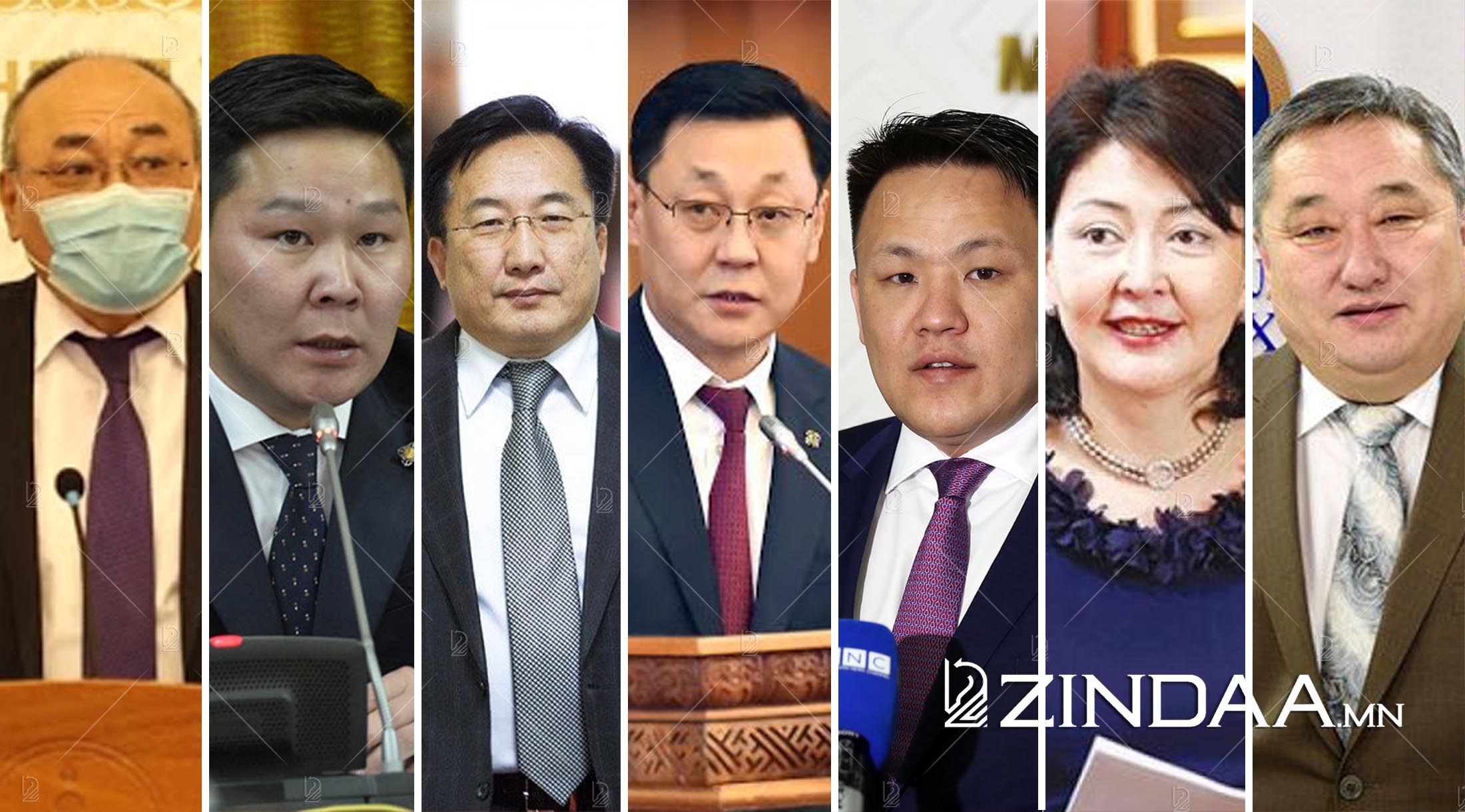 Өнгөрсөн парламентад УИХ-ын гишүүнээр ажиллаж байсан долоон хүн шүүхээс ял сонсоод байна. Тэдний зургаа нь МАН-аас сонгогдож байсан Ерөнхий сайд асан Ж.Эрдэнэбат, УИХ-ын гишүүн асан Н.Номтойбаяр, Д.Дамба-Очир, Б.Ундармаа, Д.Гантулга, Г.Солтан нар бол үлдсэн нэг нь АН-аас сонгогдож байсан Д.Эрдэнэбат юм. Тэднийг шүүхээс гэм буруутайд тооцож, үйлдсэн хэргээс нь шалтгаалж 2-6 жилийн хорих ял оноожээ.