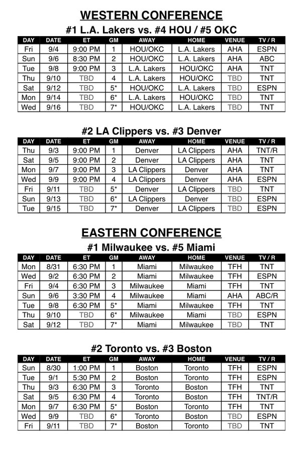 НБА лигээс хагас шигшээ тоглолтуудын бүрэн хуваарийг гаргажээ.