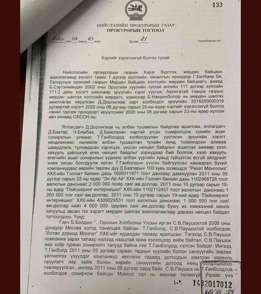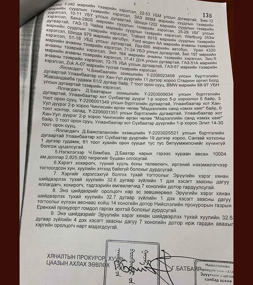Энэ бол АРДЧИЛАЛ, АВЛИГАТАЙ ТЭМЦЭХ, ШУДАРГА ЁС, ХУУЛИЙН ӨМНӨ ХҮН БҮР ТЭГШ гэдэг ойлголтууд байхгүй гэдгийн бодит баталгаа! Өнөөдрийн эрх баригч нарт ямар их итгэж, хэлсэн ярьсан ШУДАРГА ЁС нь мандаасай гэж бүх ард түмнээрээ уухайлав даа!