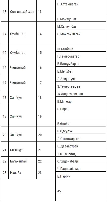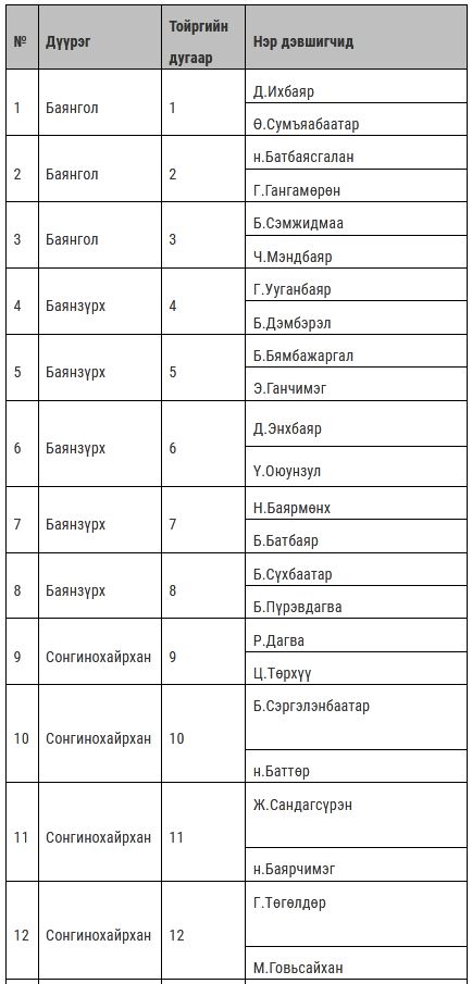 Улс төрийн намуудын ихэнх нь хуулийн дагуу 23:00 цагийн үед нэр дэвшигчдээ тодруулж дуусгасан юм. Одоогоор МАН-аас нийслэлийн дүүргүүдэд хэн хэн нэр дэвшихээр болсныг хүргэж байна.