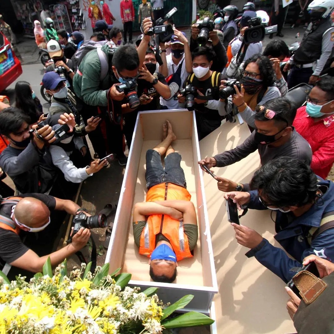 Зүүн Ява мужийн Проболинго хотод коронавирусний халдвараас сэргийлэх зорилгоор амны хаалт зүүх дэглэмийг зөрчсөн иргэдийг КОВИД-19 халдварын улмаас нас барсан хүмүүст зориулсан авс бүхий тусгай автомашинд суулган, цар тахлын хүрээ, халдварын аюулгүй байдлын дүрмийн тухай лекц уншиж байжээ. Ийм шийтгэлийг “Maron Market” зах дээр гэнэтийн шалгалт хийх үеэр амны хаалтгүй байсан 50 худалдаачин амссан байна. Авс тээвэрлэх тусгай автомашинд суулгахын өмнө эрх баригчдын төлөөлөгчид тэдэнд амны хаалт үнэгүй олгосон байна. Тусгай автомашинд сууж, лекц сонсохын сацуу зарим худалдаачныг нэг долоо хоног худалдаа хийх эрхийг нь хасах, гурван сар иргэний үнэмлэхийг нь хураах, зах болон бохир усны худаг цэвэрлэх зэрэг шийтгэл ногдуулсан байна. Түүнчлэн, Жакарта хотын зүүн дүүргүүдийн Нийгмийн хэв журмыг сахиулах агентлагийн ажилтнууд амны хаалт зүүгээгүй иргэдийг гудамжинд үзүүлэнгийн зорилгоор байршуулсан дуураймал авсанд хэдэн минутын турш байлгаж хүртэл шийтгэж байсан аж.