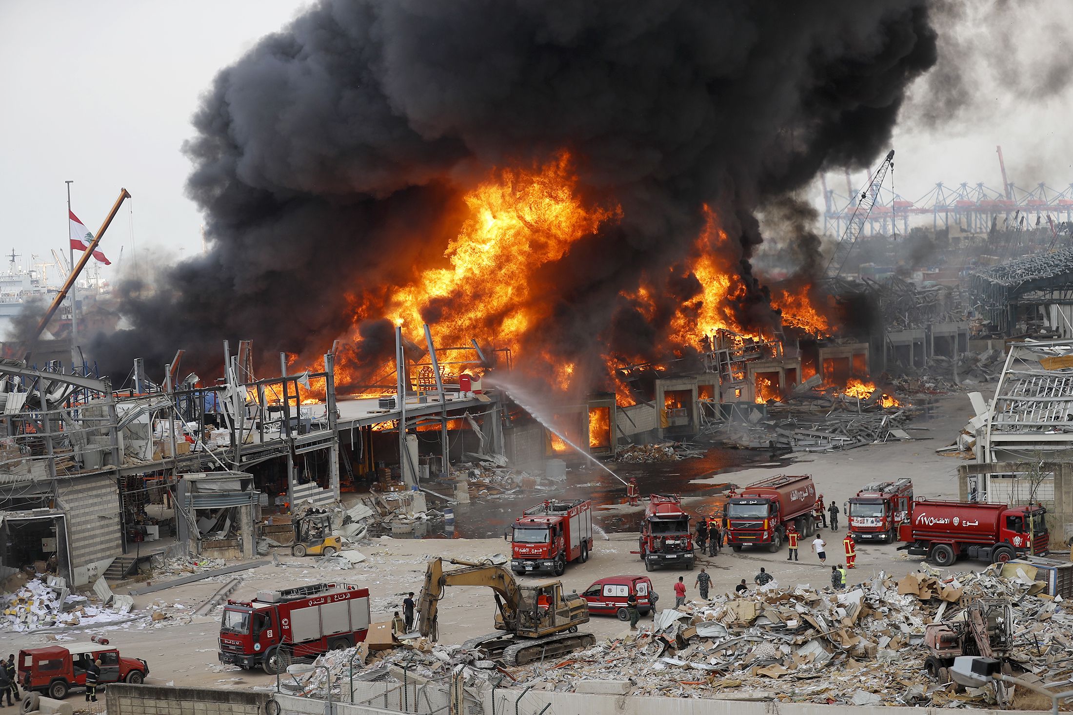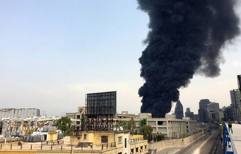 Ливаны нийслэл Бейрут хотод өнгөрсөн сард аймшигт дэлбэрэлт болсноос хойш сарын дараа хотын боомтыг дахин хар утаа бүрхлээ. Бейрут хотын далайн боомт дахь автомашины дугуй, шатах, тослох материалын агуулах шатжээ.