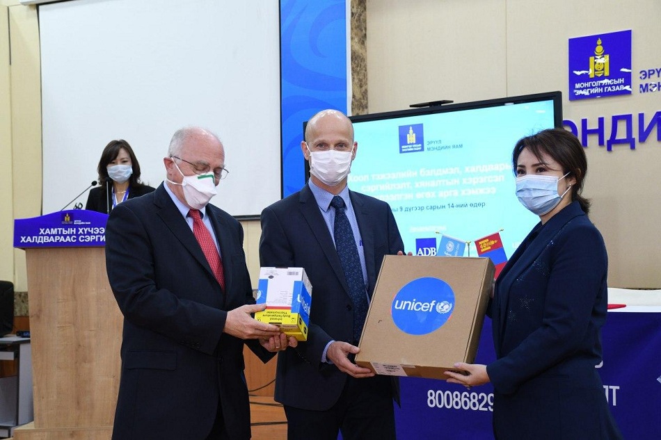 НҮБ-ын Хүүхдийн Сангаас хүүхдийн хоол тэжээлийн дутлыг илрүүлэхэд шаардлагатай өндөр, жин хэмжигч хэрэгсэл болон хоол тэжээлийн цочмог дуталтай хүүхдийн эмчилгээнд зориулсан тэжээлийн сүү, эмчилгээний хүнс, аминдэм, зайнаас халуун хэмжигч, N95 амны хаалт зэрэг нийт 440 сая төгрөгийн үнэ бүхий тусламжийг Эрүүл мэндийн яаманд хүлээлгэж өглөө. Тус тусламжийг НҮБ-ын Хүүхдийн Сангийн төв оффис, Азийн Хөгжлийн Банк (АХБ), АНУ-ын Олон Улсын Хөгжлийн Агентлаг (ОУХА), Япон улсын Засгийн газар болон НҮБ-ын Хүүхдийн Сангийн Канадын Үндэсний хороо зэрэг байгууллагын хамтарсан санхүүжилтээр нийлүүлж байгаа юм.