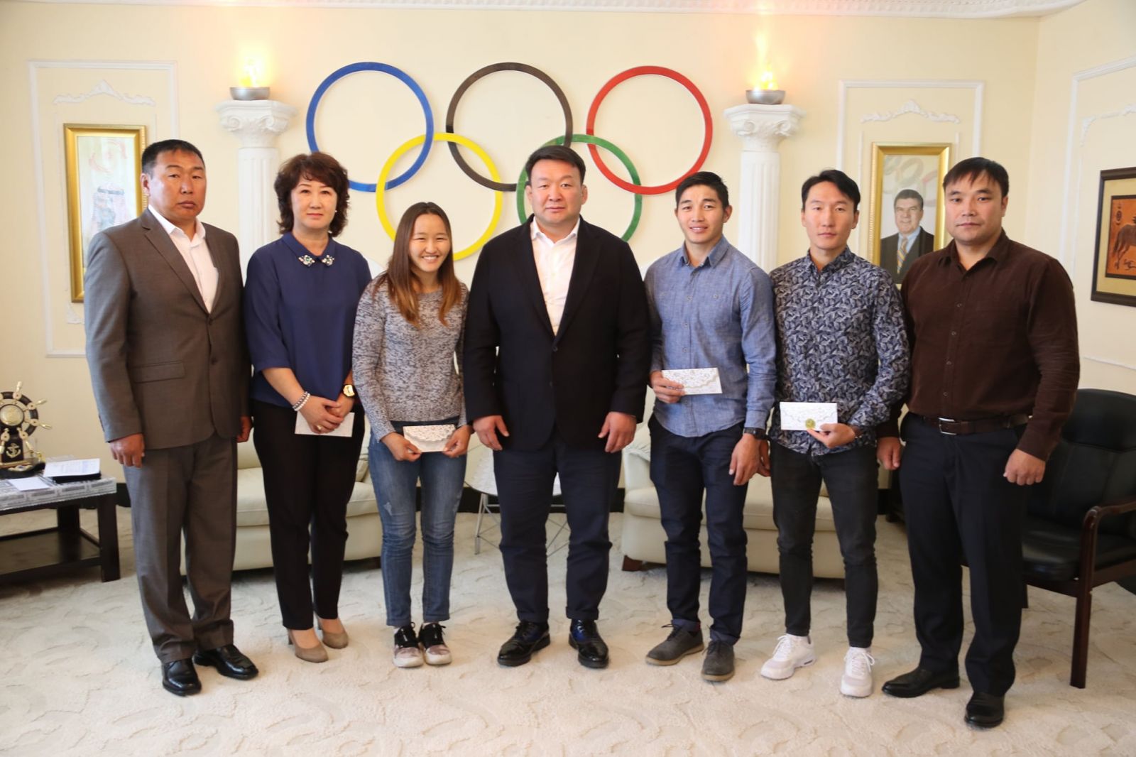 ОУОХ, МҮОХ-ноос хамтран хэрэгжүүлж буй “Бээжин-2022” олимпийн наадмын эрх авах өндөр магадлалтай тамирчдыг дэмжих хөтөлбөрт албан ёсоор батлагдсан цана, тэшүүрийн тамирчдад МҮОХ-ны Ерөнхийлөгч, “Бээжин-2008” олимпийн аварга Н.Түвшинбаяр тэтгэлэг олгож, спортын өндөр амжилт хүсэв.