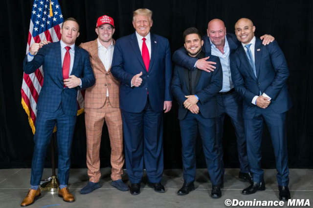 АНУ-ын Ерөнхийлөгч Доналд Трамп спорт, тэр дундаа тулааны спортод тун дуртай нэгэн. Холимог тулааны UFC холбооны тэргүүн Дана Уайт Трампыг Ерөнхийлөгчийн сонгуульд дэмжихээ илэрхийлээд байгаа.