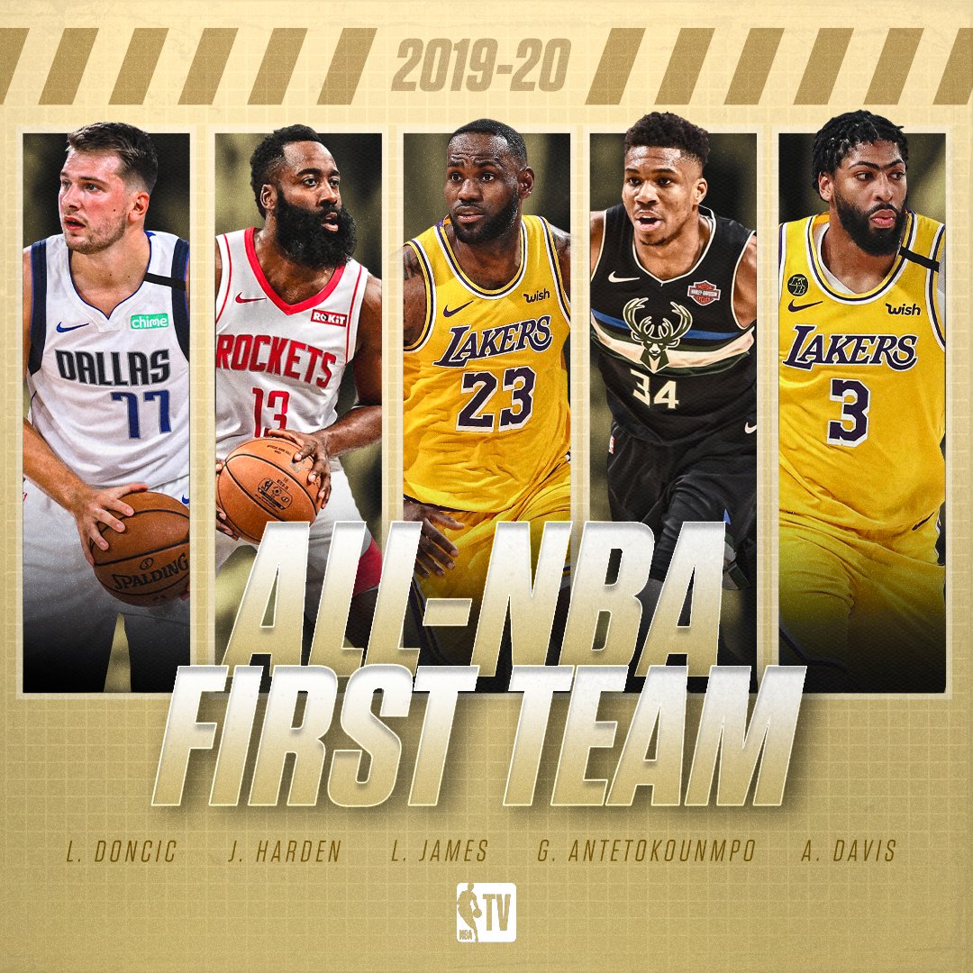 Хойд Америкийн Үндэсний сагсан бөмбөгийн холбооноос 2019/2020 улирлын Бэлгэдлийн шигшээ багуудаа зарлалаа. Дончич, ЛеБрон эхний тавалд сонгогдсон бол Йокич хоёрдугаар багт оржээ.