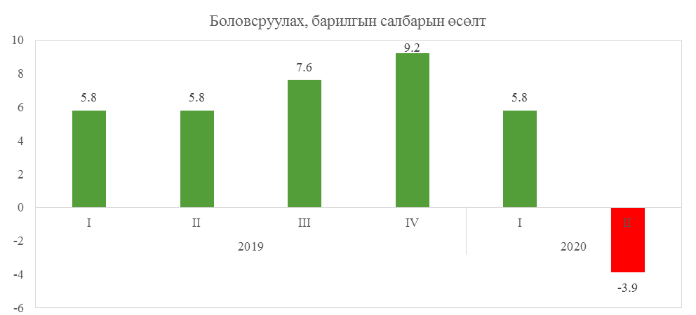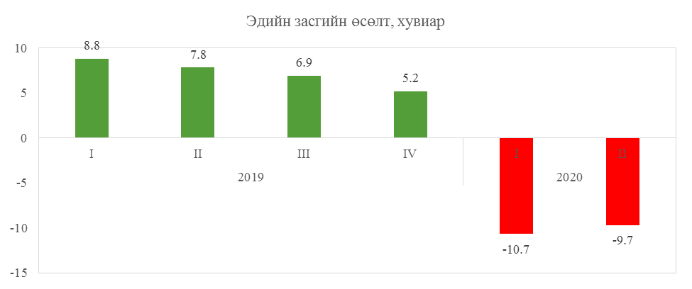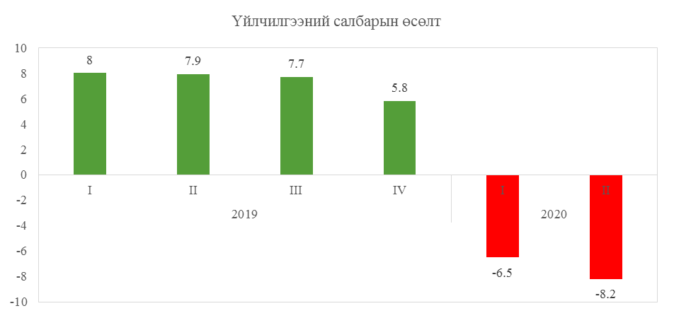 Боловсруулах салбарын бараг 50 орчим хувийг хүнсний үйлдвэрлэл эзэлдэг. Хөл хорио ихтэй байхад хүмүүсийн хүнсий хэрэглээ нэмэгдэнэ гэхээс буурахгүй. Тиймдээ ч хүнсний салбарын үйлдвэрлэл өсөлттэй гарсан бол хүнснээс бусад боловсруулах салбарынх бууралттай гарчээ. Улмаар нэгдсэн дүнгээр боловсруулах салбар агшсан байна.