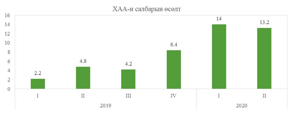 Хямралд харьцангуй бага өртсөн салбар бол ХАА-н салбар. Цар тахал ямар байхаас үл хамааран ургац ургадгаараа ургаж, мал төллөдгөөрөө төллөсөн хэрэг. Тиймдээ ч эхний 2 улирал дараалан өссөн байна.