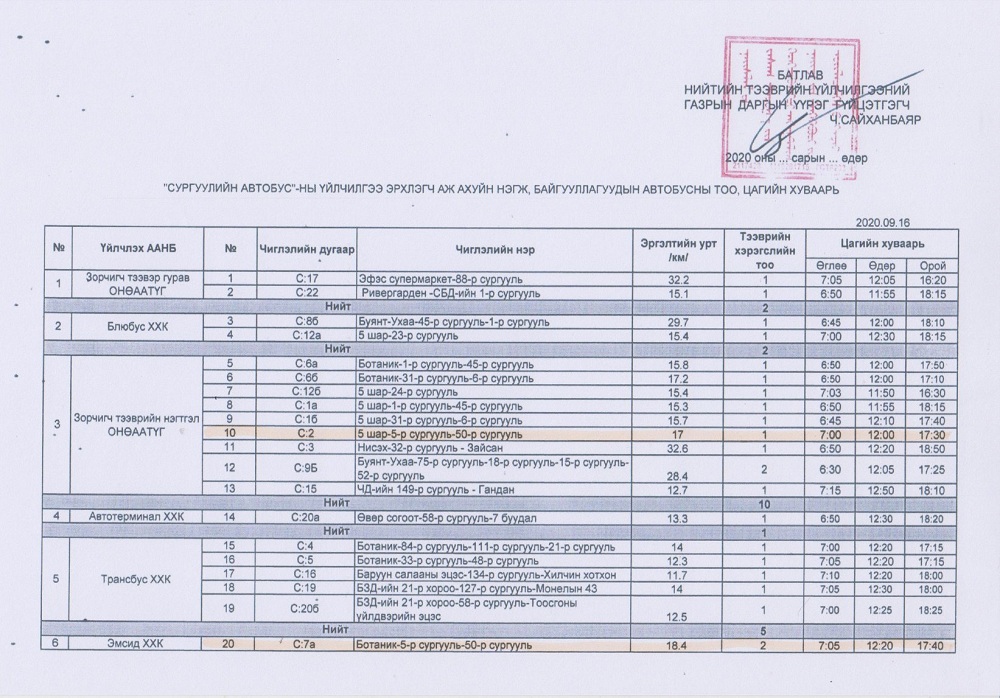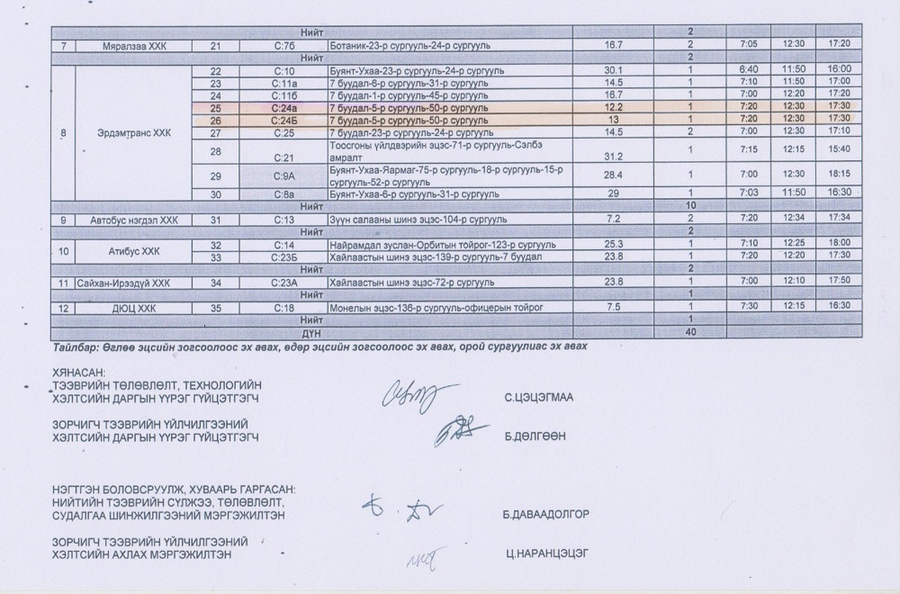 СУРГУУЛИЙН АВТОБУСНЫ ЦАГИЙН ХУВААРЬ