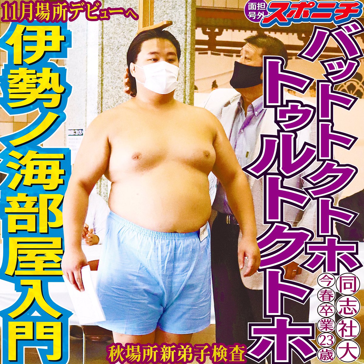 Энэ жилийн Намрын тэмцээнд ганцхан шинэ бөх шалгалтад орсон. Тэр бол Баттогтохын Төртогтох 23 настай. 181 см өндөр. 134 кг жинтэй. Тэрбээр Тоттори Жохоку ахлах сургуулийг төгсөөд, Доошишия Их сургуульд суралцан, энэ жилийн гуравдугаар сард төгссөн. Б.Төртогтох Исэноүми дэвжээнд элссэн юм.