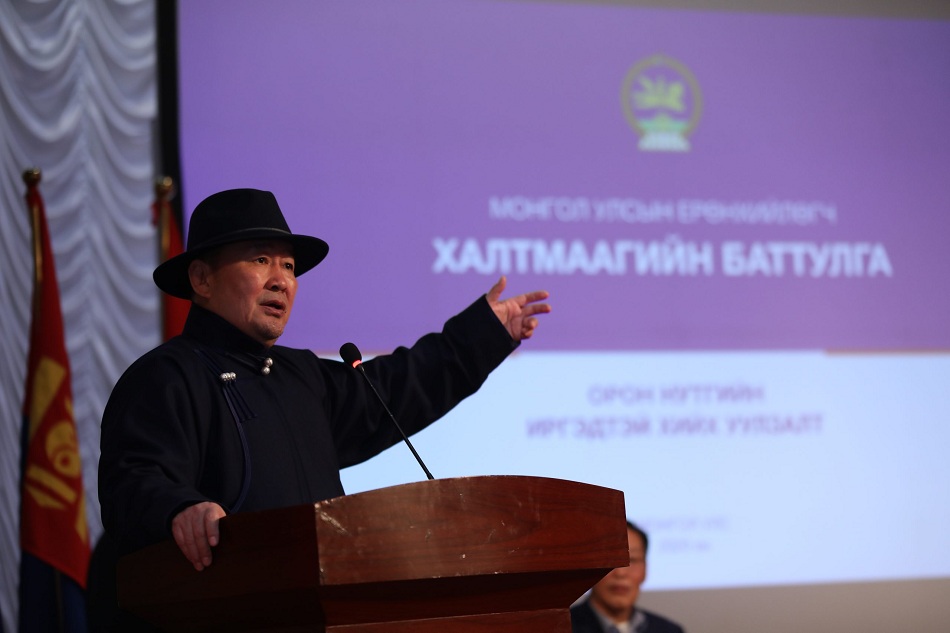 Дээр нь Монгол Улс хүн ам цөөтэй орон. Намуудад хэт хуваагдсанаас болоод ид хөдөлмөрийн насны хүмүүсийн нэг хэсэг нь гудамжинд гардаг, нөгөө хэсэг нь ээлж ээлжээрээ хоолонд орж байгаа юм шиг байдаг. Энэ байдал Монгол Улсын өрсөлдөх чадварыг бууруулаад байна. Тийм учраас бүх хүнийхээ хүчин зүйлийг, хүчин чадлыг Монгол Улсынхаа төлөө ашигладаг тогтолцоог бүрдүүлэхийн төлөө манлайлал гаргаж ажиллахыг Ерөнхийлөгчөөсөө хүсье.”