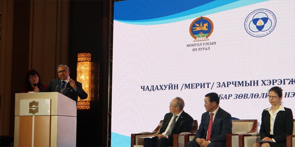 Төрийн албаны чадахуйн /мерит/ зарчмын хэрэгжилт-хүний нөөцийн аудит сэдэвт сургалт үргэлжилж байна. Сургалтад Төрийн албаны тухай хуулийн ажлын хэсгийн ахлагч Улсын Их Хурлын гишүүн Д.Тогтохсүрэн, НҮБ-ын суурин зохицуулагч Тапас Мишра, Канад Улсаас Монгол Улсад суугаа онц бөгөөд бүрэн эрхт элчин сайд Катрин Ивкоф, Төрийн албаны зөвлөлийн дарга Б.Баатарзориг, зөвлөлийн гишүүд, эрдэмтэн судлаачид оролцлоо.