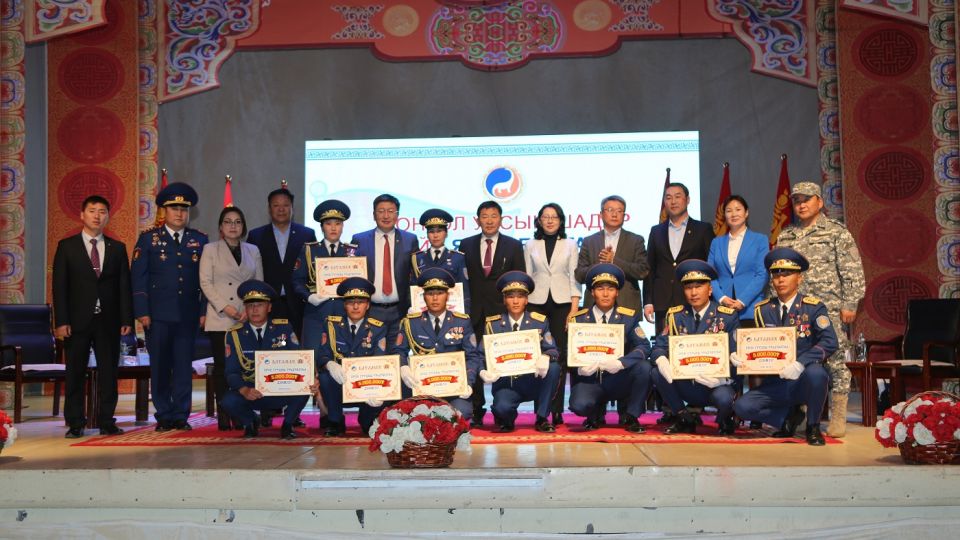 Айраг сум дахь Гал түймэр унтраах, аврах 23 дугаар ангийн шуурхай удирдлагын оператор, ахлах ахлагч О.Болорцэцэг, аврагч-гал сөнөөгч, ахлах ахлагч Д.Уламбаяр, аврагч-гал сөнөөгч, ахлах ахлагч У.Золбоо, гал унтраах автомашины жолооч, ахлагч С.Сугирбаатар, гал унтраах автомашины жолооч, ахлагч Д.Очирхуяг, аврагч-гал сөнөөгч, ахлагч Б.Мөнх-Эрдэнэ, Улсын нөөцийн харуул, ахлах ахлагч З.Ганзориг, Улсын нөөцийн харуул, ахлах ахлагч Л.Отгонтөгс, Улсын нөөцийн бичиг хэрэг, аж ахуйн нярав, ахлах ахлагч Ц.Саранцацрал, Улсын нөөцийн харуул, дэд ахлагч Б.Мягмар нарын алба хаагчдад олгосон юм.