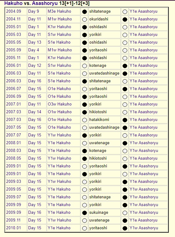 Сүмогийн ертөнцийг донсолгож байсан нэгэн том өрсөлдөөн бол Монголын хоёр аварга Асашёорюү, Хакүхо нарын “халз тулаан” байлаа. Тэд хамгийн анх 2004 оны Намрын тэмцээнд учраа таарч байжээ.