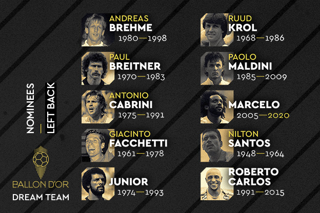 Францын France Football сэтгүүлийн газраас хүн төрөлхтний түүхэн дэх хамгийн шилдэг “Мөрөөдлийн баг” шинэ төсөл хэрэгжүүлж эхэллээ. Энэ багийг 3-4-3 схемээр гаргана. Байрлал болгонд 10 тоглогч нэр дэвшүүлж, сэтгүүлчдийн саналаар шилдгийг тодруулах юм. Энэ удаад шилдэг зүүн жигүүрийн хамгаалагчид нэр дэвшигчдийг танилцуулжээ.