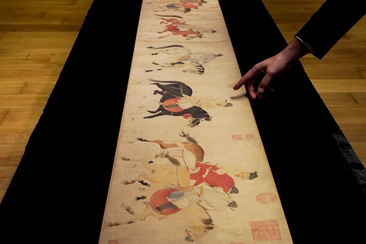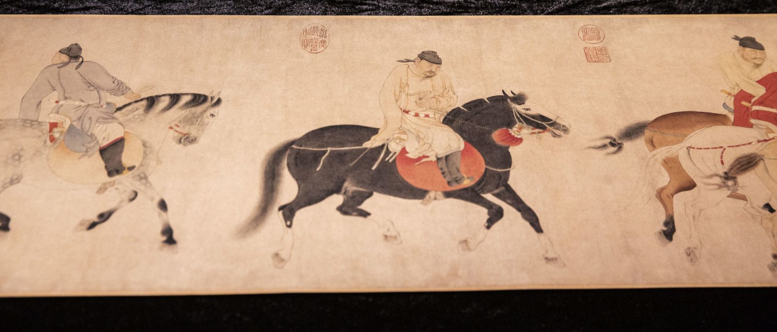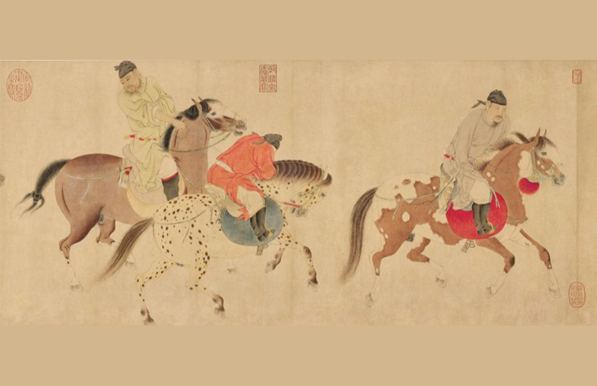 “Харьж яваа морь унасан халамцуу таван ханхүү”-г дүрсэлсэн хоёр метр урт зургийг XIV зууны Хятадын алдарт зураач Рен Ренфен бүтээжээ. Хааны ордны зураач байсан түүний бүтээлүүдийн /нийт 21 зураг зуржээ/ ихэнх нь музей, хувийн цуглуулгад хадгалагддаг байна. Хуйлмал зураг эзэн хааны цуглуулгад байсан бөгөөд хэд хэдэн хааны тамгын дардас бий. Зурагт морь унасан таван ханхүүг дөрвөн зарцын хамтаар дүрсэлжээ. Ханхүү нарын нэг Ли Лунзи хожим нь Тан улсыг хамгийн удаан хугацаанд захирсан Шуаньзун эзэн хаан юм.