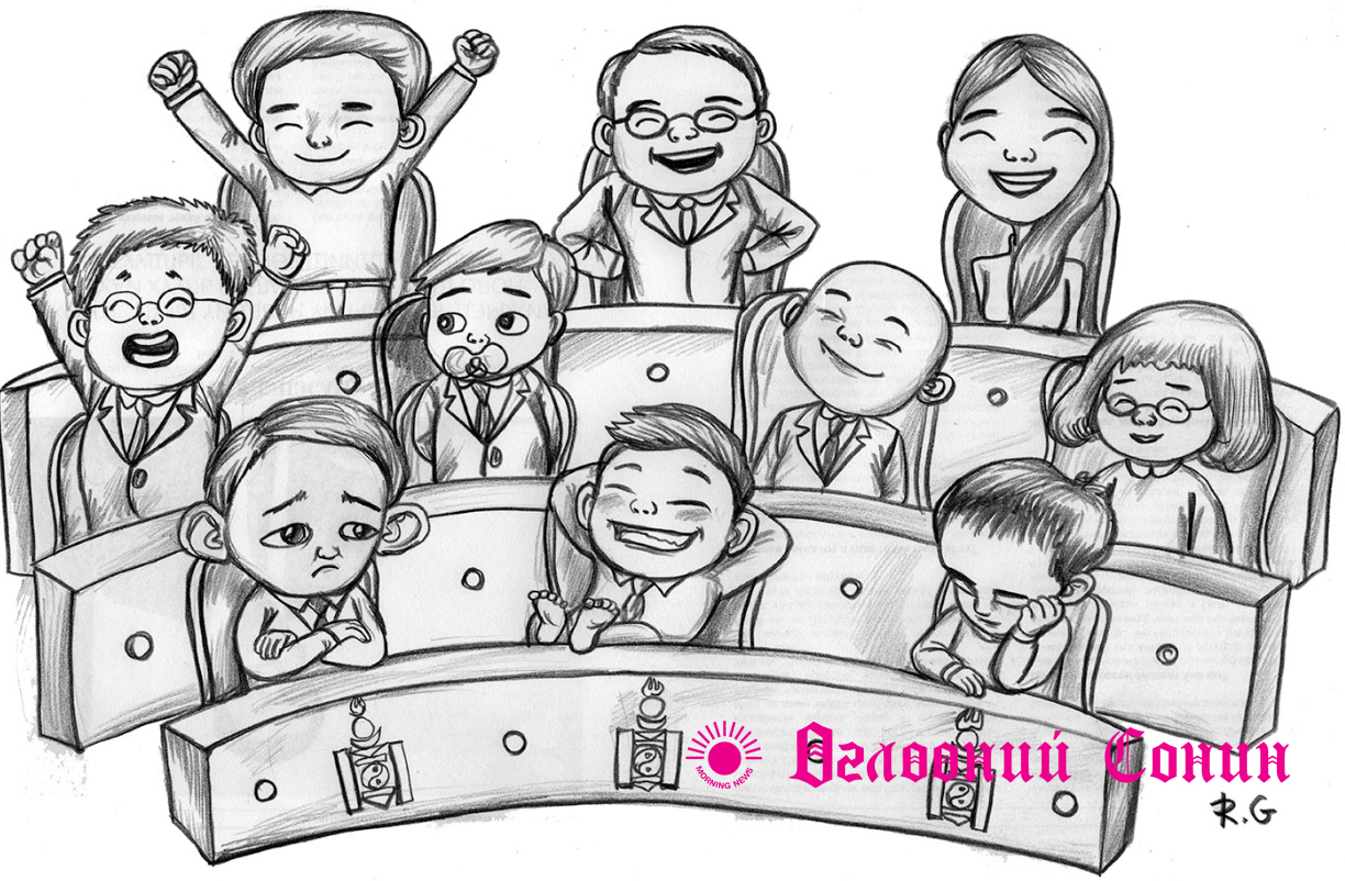 Одоо яая гэхэв дээ. Бидний л хийсэн сонголт шүү дээ. Гэхдээ л энэ жилийн сонгуульд дэвшил их байлаа. Энэ их хурал дотор Нямдорж, Улаан, Лүндаа, Оюунхорол, Зандан, Энхболдууд, Эрдэнэ, Жавхлан, бандааш, монос, боов, кавьтаал, Сүхбат нар байхгүй гээд бодооч. Хэрэв тэд хэлхэлдээд сууж үлдсэн бол өдийд тэд биш харин бид массаараа нэг л биш болчих байсан, тийм биз дээ?