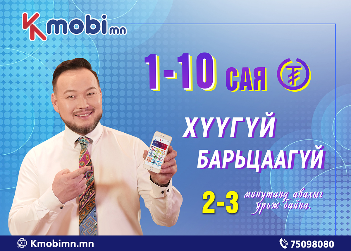Танд цаг алдалгүй зээл авах шаардлага гарч, санхүүгийн асуудлууд тулгарч яах аа мэдэхгүй байна уу? Ердөө 2-3 минутанд таны санхүүгийн асуудлыг шийдэж, 1-10 сая төгрөгийн зээлийг ХҮҮГҮЙ, БАРЬЦААГҮЙ олгодог Kmobimn цахим зээлийн аппликейшныг танилцуулъя.