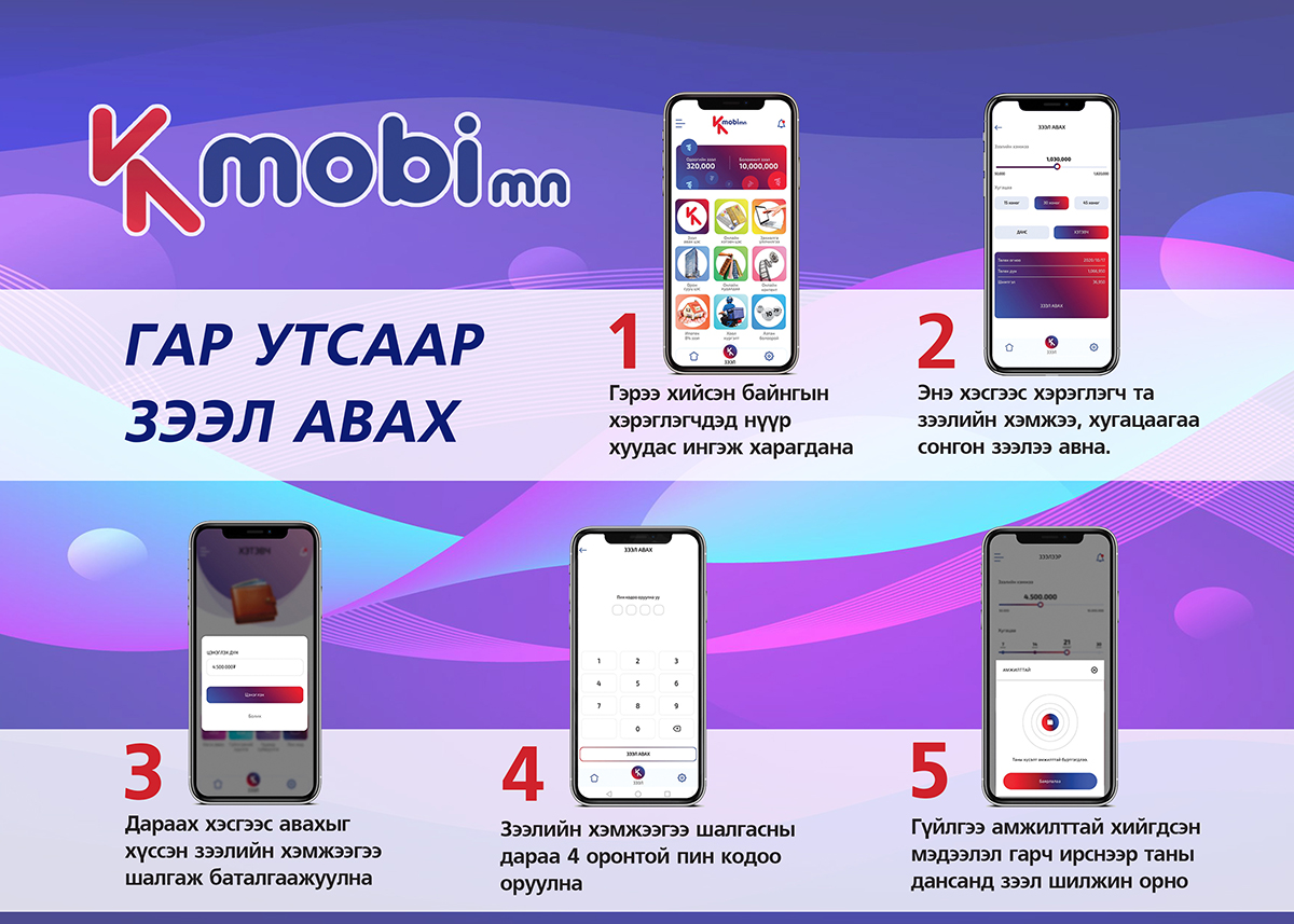 Та Kmobimn аппликейшнийг ашиглан зээлийн үйлчилгээ авахын тулд :