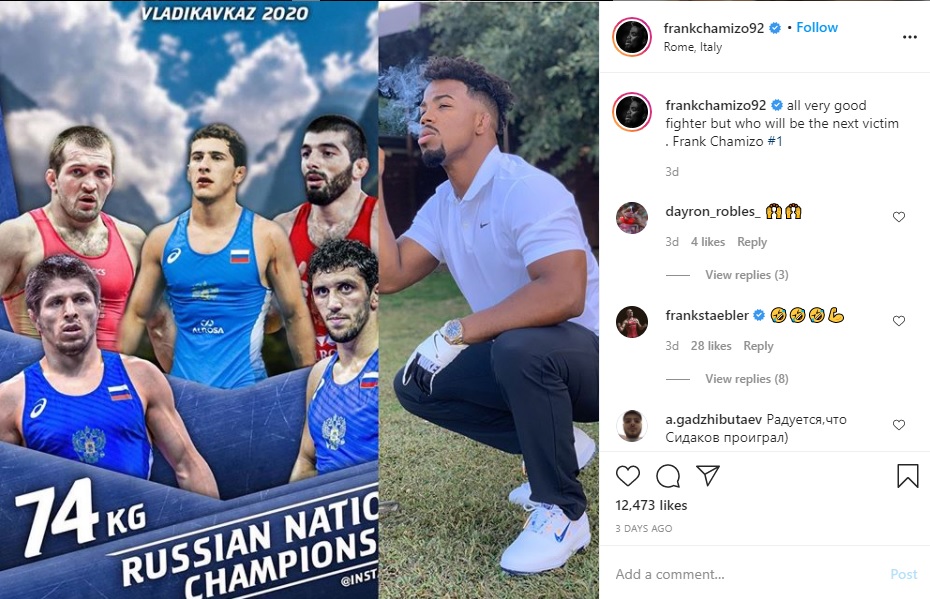 Олимпын хүрэл медальт, дэлхийн хошой аварга, ДАШТ-ий мөнгө, хүрэл медальт Италийн куба бөх Франк Чамизо инстаграм хуудсандаа өөрийн жин болох 74 кг-ийн медаль хүртсэн орос бөхчүүдийг онцолжээ.