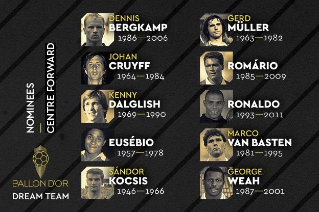 Францын France Football сэтгүүлийн газраас хүн төрөлхтний түүхэн дэх хамгийн шилдэг “Мөрөөдлийн баг” шинэ төсөл хэрэгжүүлж эхэллээ. Энэ багийг 3-4-3 схемээр гаргана. Сэтгүүлчдийн саналаар шилдгийг тодруулах юм. Энэ удаад шилдэг төвийн довтлогчдыг танилцуулжээ.