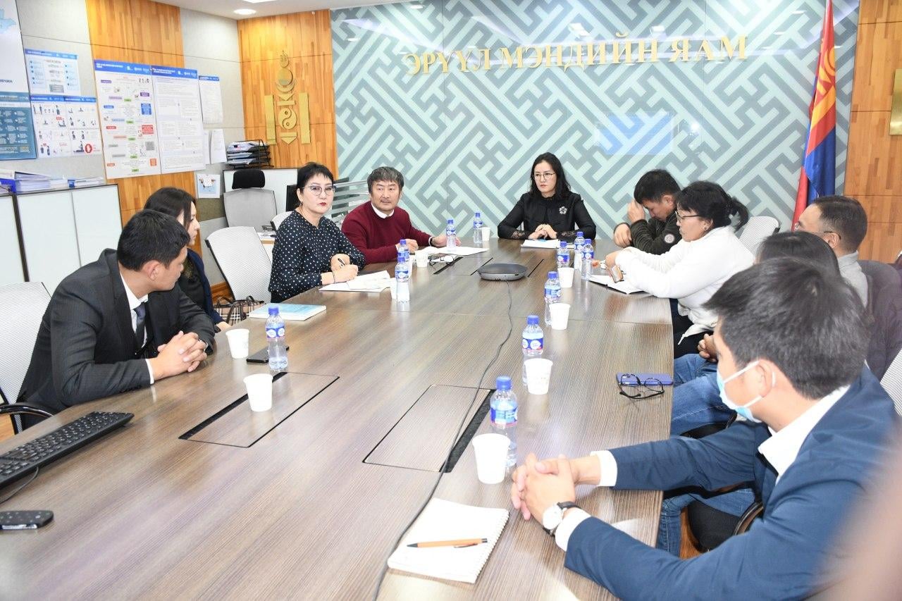 Эрүүл мэндийн сайдын зөвлөх О.Чимэдсүрэн өнөөдөр /2020.10.23/ ЭМЯ, ХӨСҮТ, ЗӨСҮТ, 15 ачаа, тээврийн байгууллагын төлөөлөлтэй уулзалт хийжээ.