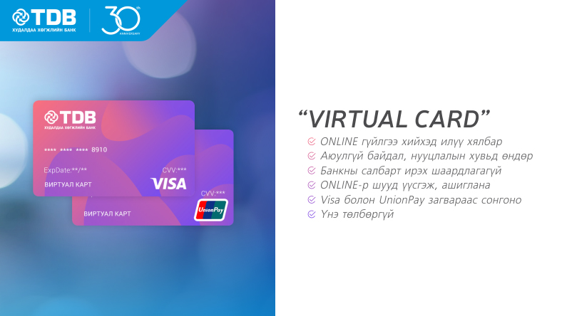 Харин уншигч Та картаа хараахан захиалж амжаагүй бол TDB Online аппликейшн ашиглан хормын дотор захиалгын хүсэлт  илгээж, өөрийн Юнион Пэй картаа тэр даруй ашиглах боломжтой.