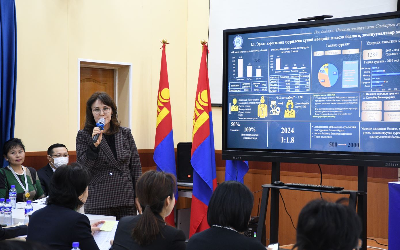 Өнөөдөр төгсөлтийн дараах ҮНДСЭН мэргэшлийн сургалтыг 22 СЭБ 30 мэргэшлийн чиглэлээр 754 хүний их эмч, төрөлжсөн мэргэшлийн чиглэлээр 16 СЭБ, 61 мэргэшлийн чиглэлээр, Сувилагч, тусгай мэргэжилтний сургалтыг 14 СЭБ, 29 мэргэшлийн чиглэлээр бэлтгэж байна. Бид цаашид сургалт эрхлэх байгууллагын тоог нэмэгдүүлэх, үүнд БОЭТ, Дүүргийн нэгдсэн эмнэлэг болон бусад шаардлага хангасан эмнэлгүүд байна гэж харж байна. Жил бүр эмнэлзүйн сургагч багш болон сувилахуйн сургагч багшийг тус бүр 144-ийг улсын төсвийн санхүүжилтээр бэлтгэнэ. Одоогийн байдлаар ЭМХТ-д Эм, эмнэлгийн тоног төхөөрөмжийн асуудал хариуцсан алба ажиллаж байгаа боловч эмийн асуудал хариуцсан агентлаг байгуулахаар хууль эрхзүйн орчин бүрдээд байгаа” гэлээ.